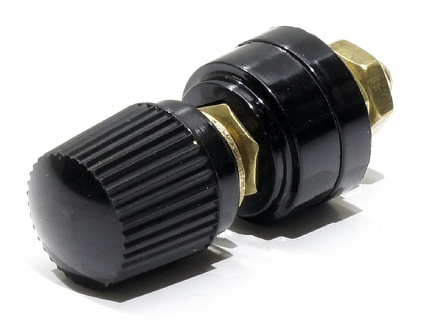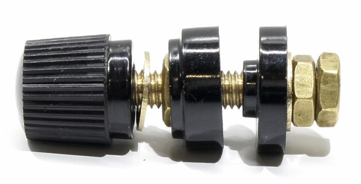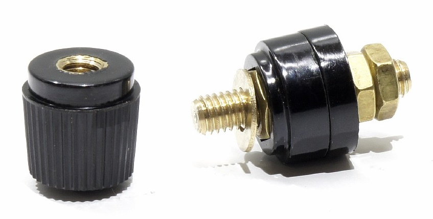 Разъем обеспечивает вращением оголовка винтовое электрическое соединение для проводов с клеммой типа "вилка" или "кольцо", а также отдельных неизолированных проводников подходящего диаметра.